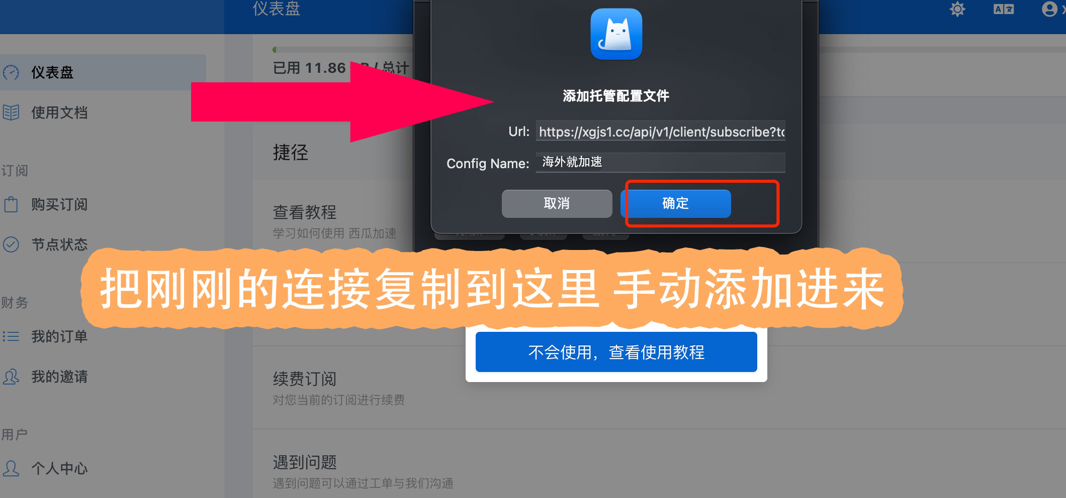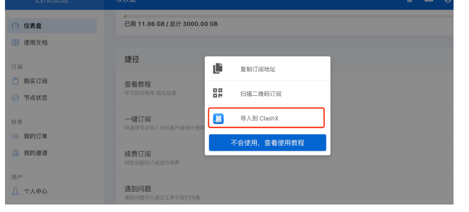 ## 主要 必须了解 ## 主要 必须了解 ## 1 如安装杀毒防护软件,请卸载 (360 QQ安全管家无需卸载) ## 2 非校园网或公司内网使用,很多内网会禁用国外网络, ## 3 如果是家庭网络使用不了,请检查路由设置,安全等级要调成最低 ## 一、购买国外节点⭕️科学上网 ## 有任何问题联系下方在线客服转人工客服解决 复制到浏览器或点我打开注册使用兑换卷⭕️[http://快鸟上网.com](http://快鸟上网.com "http://快鸟上网.com")⭕️ 2:上面网站打不开打开用这个备用网站 https://kn2686.com ## 购买付费节点专享超高速网速,除了chat gpt,还可以使用tiktok、谷歌、ins、youtube、twitter等其它国外软件 ------------ ## 2、注册登录  ------------ ## 3、购买订阅-选择合适的套餐付款  ------------ ## 4、下载ClashX 导入的官网 刚刚购买的 ## 4.1 下载ClashX软件 ### [点我下载](http://www.app-bos.com/ipmiW0n6xi5g "点我下载") ------------ ## 4.2 安装ClashX软件 首次使用 ClashX 时,macOS 会提醒你此应用来自未知开发者,请允许打开此应用。 ClashX 首次运行会提示是否安装帮助程序(Helper)。此帮助程序用于设置系统代理,否则每次你通过 ClashX 变更系统系统状态(打开或关闭)时都需要输入密码,请点击 “Install”,之后 macOS 会提示输入用户密码。 ------------  ------------ 4.3 打开首页,找到一键订阅  ------------ 方法1 自动点击自动导入的 4.4 点击导入到ClashX 注意:必须用苹果浏览器去导入,不能用微信或者其他浏览器  ------------ 4.5 点击确定  ------------ ## 方法二 复制链接  ------------  ------------ ==4.6 出战规则这里有规则模式 全局链接,设置为系统代理这里要打勾== 注意:如果使用chatgpt建议使用全局模式  ------------
